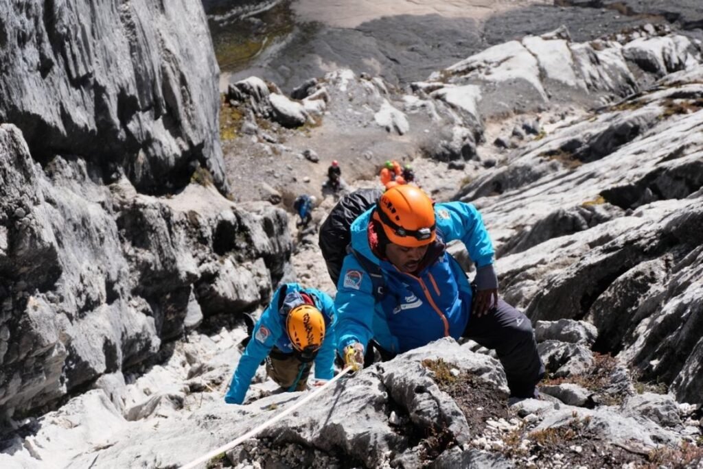 The terrain on Carstensz is far from the typical hiking trails found on most Indonesian mountains. Here, climbers step into a full rock-climbing environment. Towering limestone walls, steep vertical cliffs, long sloping sections, and narrow rock gaps define the journey to the top. When rain hits, the limestone turns extremely slippery and dangerous. Many sections of the route can only be passed using proper climbing gear such as a harness, carabiners, ascenders, and fixed rope techniques that must be mastered beforehand. At certain points, climbers must cross between cliffs in mid-air using techniques that demand high concentration, precision, and courage.
